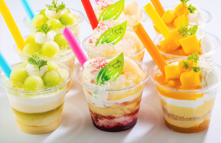 飲むドルチェケーキ 各650円 桃・メロン・マンゴー